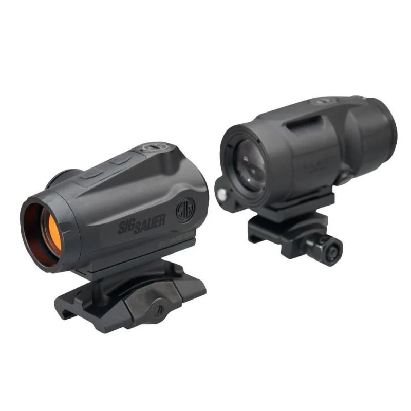 Combining power and precision the ROMEO5 GEN II and JULIET3 Micro package has arrived. Refreshed with a bold look the ROMEO5 GEN II optic provides a durable 1x aiming solution for civilians and armed professionals alike with a crisp 2 MOA red dot emitter powered by a CR2032 battery that can be quickly replaced. Couple with SIG SAUER'S motion-activated MOTAC technology the ROMEO5 GEN II boasts a 40000 hour runtime under standard usage. Featuring top mount ambidextrous controls that offer 10 daylight and 2 night vision settings finding the optimal setting for your environment is quick and intuitive.