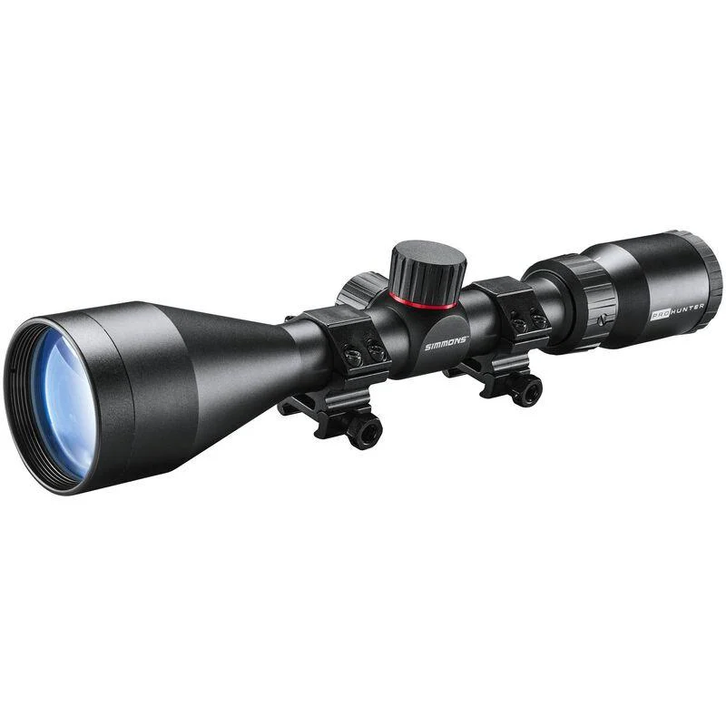 Simmons Pro Hunter Riflescopes offer an all-glass optical system providing crisp images in low lighting conditions with fully coated lenses and IPX7 waterproof fog-proof and shockproof construction giving you piece of mind in the outdoors. Built with an aggressive and rugged new design including textured magnification power change ring and capped finger adjustable windage and elevation turrets. The Pro Hunter riflescopes feature a one-inch one-piece aluminum main tube with a simple easy-to-use Simmons Truplex Reticle.