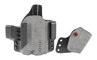 The Incog X is compatible with any Red Dot Sight (RDS) capable of being installed on the firearm manufacturer’s slide behind the ejection port (including mounting options using the firearm manufacturer’s adapter plates). They tested dozens of popular RDS models including larger optics like the Trijicon SRO. The Trijicon SRO requires a slight repositioning of the upper flat clip to eliminate minor interference, but works flawlessly after adjustment. Boltaron construction provides form fitting passive retention. Suede exterior adds extra friction for secure IWB wear. Adjustable clip positioning allows for ride-height adjustment.