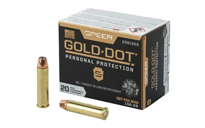 Gold Dot was the first handgun ammunition loaded with true, bonded-core bullets. Using an exclusive Uni-Cor method, Speer bonds the jacket to the core one molecule at a time at the very beginning of the bullet construction process. This virtually eliminates core-jacket separation. With options for both standard handguns and short barrels, there’s a Gold Dot load to fit any shooter. Each Gold Dot hollow point cavity is tuned by specific caliber and bullet weight to ensure optimum performance. Speer forms the hollow point cavity in two stages. The first establishes how far the bullet can expand; the second controls the rate of expansion. This patented two-step cavity formation gives Speer engineers incredible control in the design process. Each bullet caliber and weight is tuned for optimum expansion and penetration. The bullet is then finished to provide a smooth profile for reliable feeding in semi-automatic handguns. To ensure Gold Dot performs when you need it most, they first make sure it excels in the stringent tests developed by the Federal Bureau of Investigation for service-class handgun cartridges. These protocol tests evaluate penetration, expansion and retained weight in bare gelatin and gelatin shielded by common barriers.