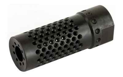 The Spike’s Tactical Dynacomp is designed to reduce recoil impulse and muzzle climb to provide faster follow up shots. The Dynacomp accomplishes this by balancing the direction of the blast along the vertical (upward) and perpendicular planes of the muzzle to lower muzzle rise. The ports on the Dynacomp are ball dimpled for smooth expansion of gases and rapid heat dissipation. The front of the device is 0.25″ thick to better handle the abuse of full auto fire.