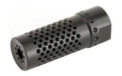 The Spike’s Tactical Dynacomp is designed to reduce recoil impulse and muzzle climb to provide faster follow up shots. The Dynacomp accomplishes this by balancing the direction of the blast along the vertical (upward) and perpendicular planes of the muzzle to lower muzzle rise. The ports on the Dynacomp are ball dimpled for smooth expansion of gases and rapid heat dissipation. The front of the device is 0.25″ thick to better handle the abuse of full auto fire.