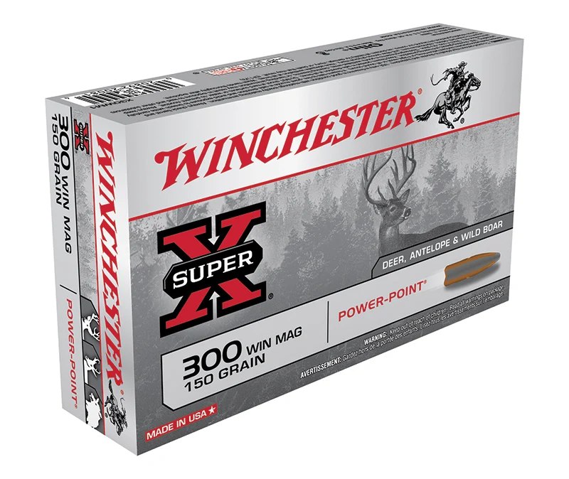 Winchester Ammunition, MFG# X30WM1, UPC: 020892200814, UOM: BOX, Super-X, 300 Win Mag, 150 grain, Power-Point, 20/box, WINC, WINCAM30, WINCAMALL, AM30, AMALL, Case: 10