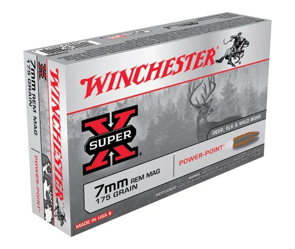 Winchester Ammunition, MFG# X7MMR2, UPC: 020892200135, UOM: BOX, Super-X, 7mm Rem Mag, 175 grain, Power-Point, 20/box, WINC, WINCAM30, WINCAMALL, AM30, AMALL, Case: 10