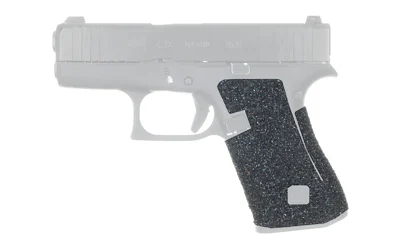 Talon Grips for Glock Gen 5 Models 19″ 23 and 44 with No Backstrap installed. This rear wrap grip is in the granulate texture. This grip provides full coverage on the side panels including above the thumb rest, ample coverage on the backstrap, and three finger wraps for the finger groves under the trigger guard. This grip has a logo cutout for the Glock emblem on the left side. This grip sticks extremely well even with the Rough Textured Frame (RTF). Talon Grips are 100% Made in the USA. Adhesive material is less than 0.5mm thick.