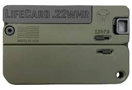 The new standard for Discreet Carry ? a folding single-shot .22WMR pistol that?s no bigger than a stack of credit cards. At .5 inches thin and weighing less than 7 ounces LifeCard will be the last gun you?ll leave behind.