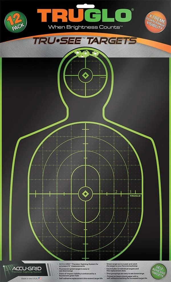 TRUGLO TRU-SEE Self Adhesive Targets – Handgun 12×18 Green 12 Pack