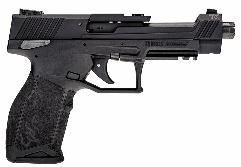 Taurus, MFG# 1-TX22C151, UPC: 725327932741, UOM: EA, TX22 Competition, 22LR, 5″ Threaded Barrel, Adj Rear Sight, Black, 3 16-rd Mags, TAUR, TAURHG10, TAURHGALL, HG10, HGALL