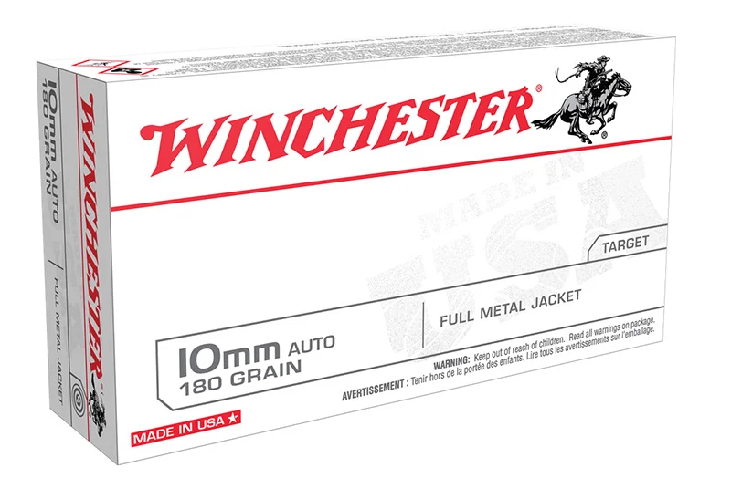 Winchester Ammunition, MFG# USA10MM, UPC: 020892225534, UOM: BOX, USA, 10mm, 180 grain, Full Metal Jacket, 50/box, WINC, WINCAM40, WINCAMALL, AM40, AMALL, Case: 10