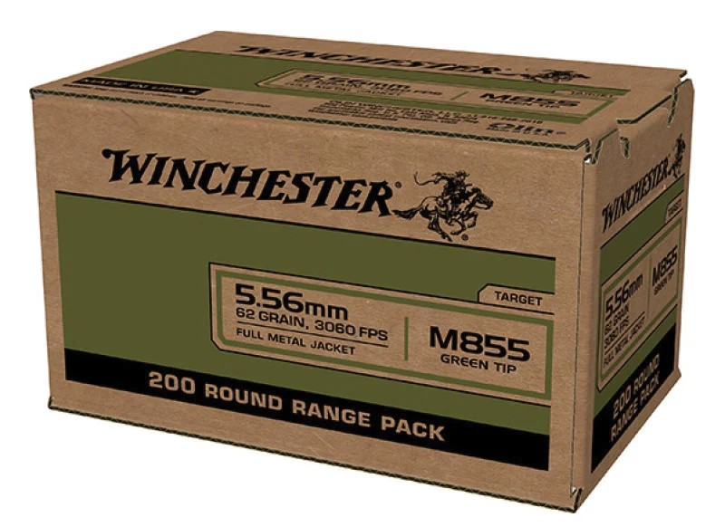 Winchester Ammunition, MFG# WM855200, UPC: 020892228641, UOM: BOX, USA, 5.56mm M855, 62 grain, Full Metal Jacket, 200/box, Green Tip, WINC, WINCAM30, WINCAMALL, AM30, AMALL, Case: 600