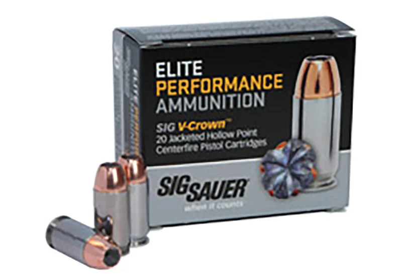 Sig Sauer, MFG# E45AP1-50, UPC: 798681537709, UOM: BOX, Elite V-Crown, 45 Auto, 230 grain, JHP, 50/box, SIGA, SIGAAM40, SIGAAMALL, AM40, AMALL, Case: 10