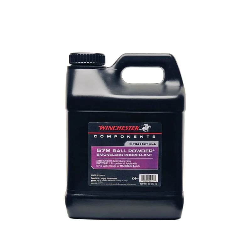 This new Winchester powder is strategically designed to do a myriad of jobs. First it has the correct burn rate to create the famous 3 ¼ dram equivalent 1 ¼ oz 1330 fps 12 gauge load originated by Winchester. And it does it with any brand case! Back Fence competitors and pheasant hunters will be delighted. Now that is just one application and it goes on to provide clay target loads superb in 20 gauge and 28 gauge top field loads in both and outstanding field loads for the wonderful 16 gauge. In addition 572 has a vast number of pistol applications ranging from the 25 ACP to the 45 ACP and all popular calibers in between. This is one positively versatile and useful propellant.