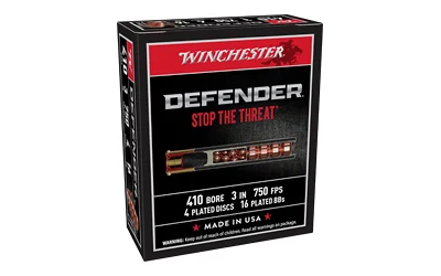 Highly effective in both 410 compatible handguns and shotguns, the 410-gauge PDX1 Defender ammunition features a distinctive black hull and black oxide high-base head; it combines four plated Defense Disc projectiles and 16 pellets of plated BB shot. The result is the ideal personal defense load for short-range engagements with the performance needed to stop threats.