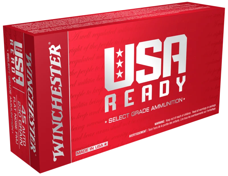 WINCHESTER USA READY 45ACP 230GR FMJ FLAT NOSE BRASS