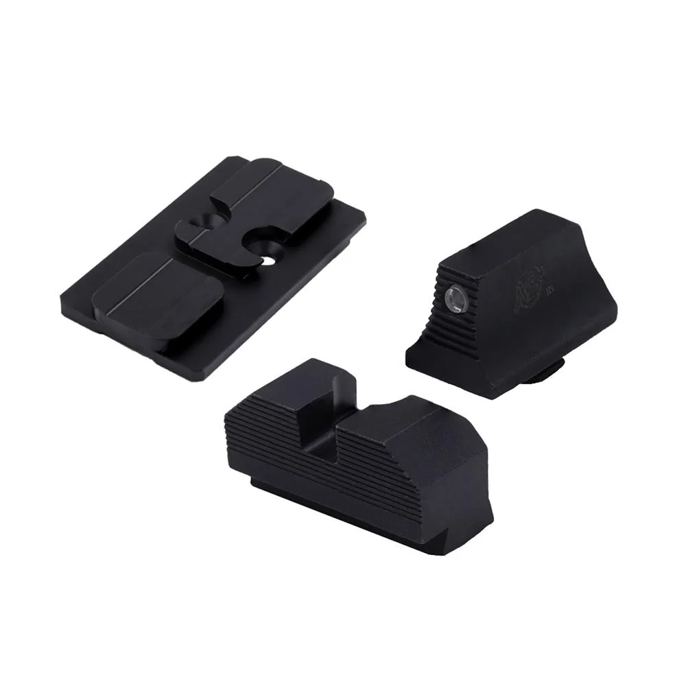- Kit includes: Optic plate blue threadlocker screws torx bit front sight rear sight and red threadlocker
